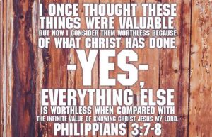 “Tetapi apa yang dahulu merupakan keuntungan bagiku, sekarang kuanggap kerugian karena Kristus. Malahan segala sesuatu kuanggap rugi, karena pengenalan akan Kristus Yesus, Tuhanku, lebih mulia dari pada semuanya…”