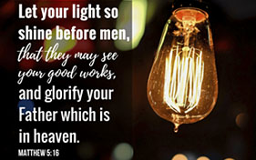 “Demikianlah hendaknya terangmu bercahaya di depan orang, supaya mereka melihat perbuatanmu yang baik dan memuliakan Bapamu yang di sorga.”