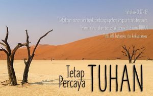 “Sekalipun pohon ara tidak berbunga, pohon anggur tidak berbuah, dan hasil pohon zaitun mengecewakan, sekalipun ladang-ladang tidak menghasilkan bahan makanan, kambing domba terhalau dari kurungan, dan tidak ada lembu dalam kandang, aku akan bersukacita di dalam TUHAN, bersorak-sorai di dalam Allah Penyelamatku. ALLAH Tuhanku itu kekuatanku. Ia membuat kakiku seperti kaki rusa, Ia membuat aku mampu berjalan di tempat tinggi”.